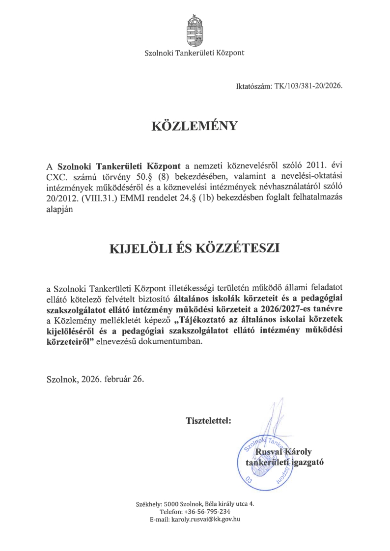 Szolnoki Tankerületi Központ közleménye 2026-03-06 Közlemény mellékletének letöltése (PDF) Read more Hírek