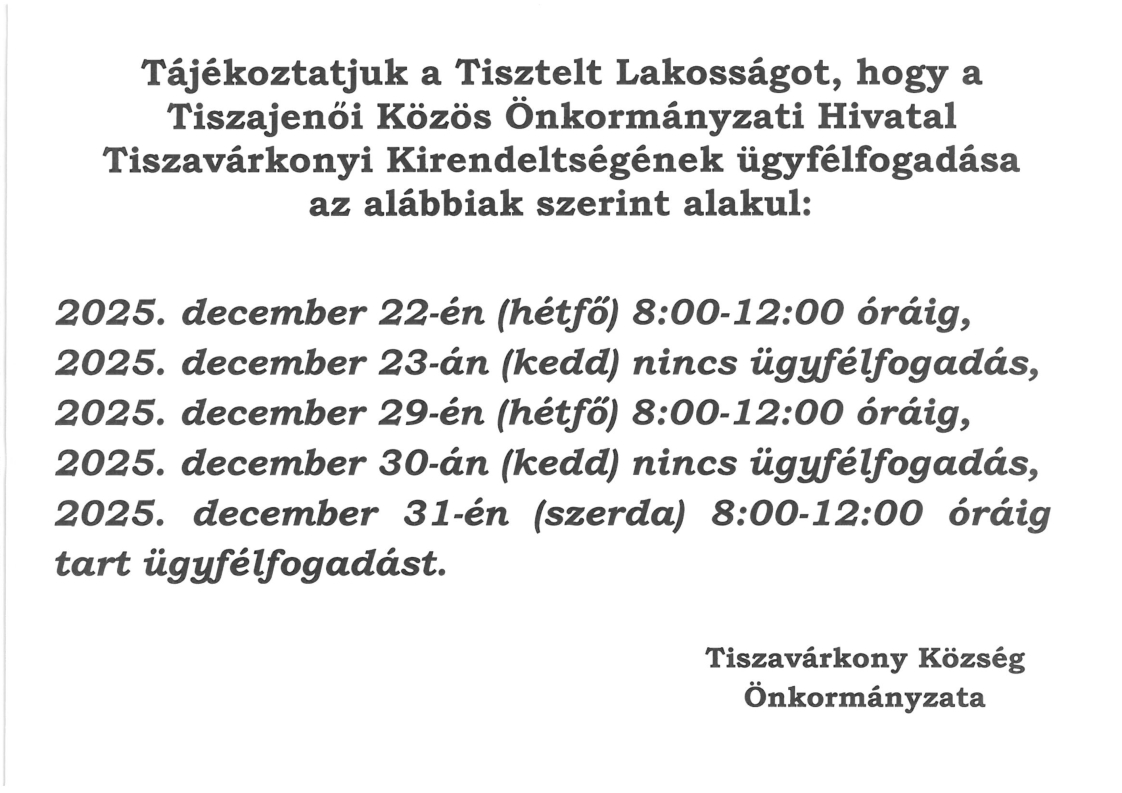 Ügyfélfogadási rend 2025. december